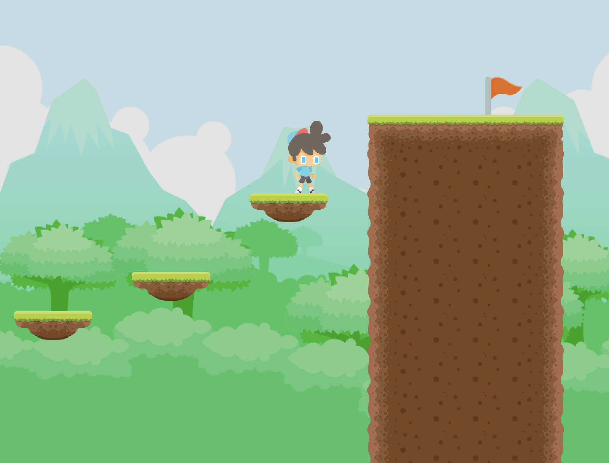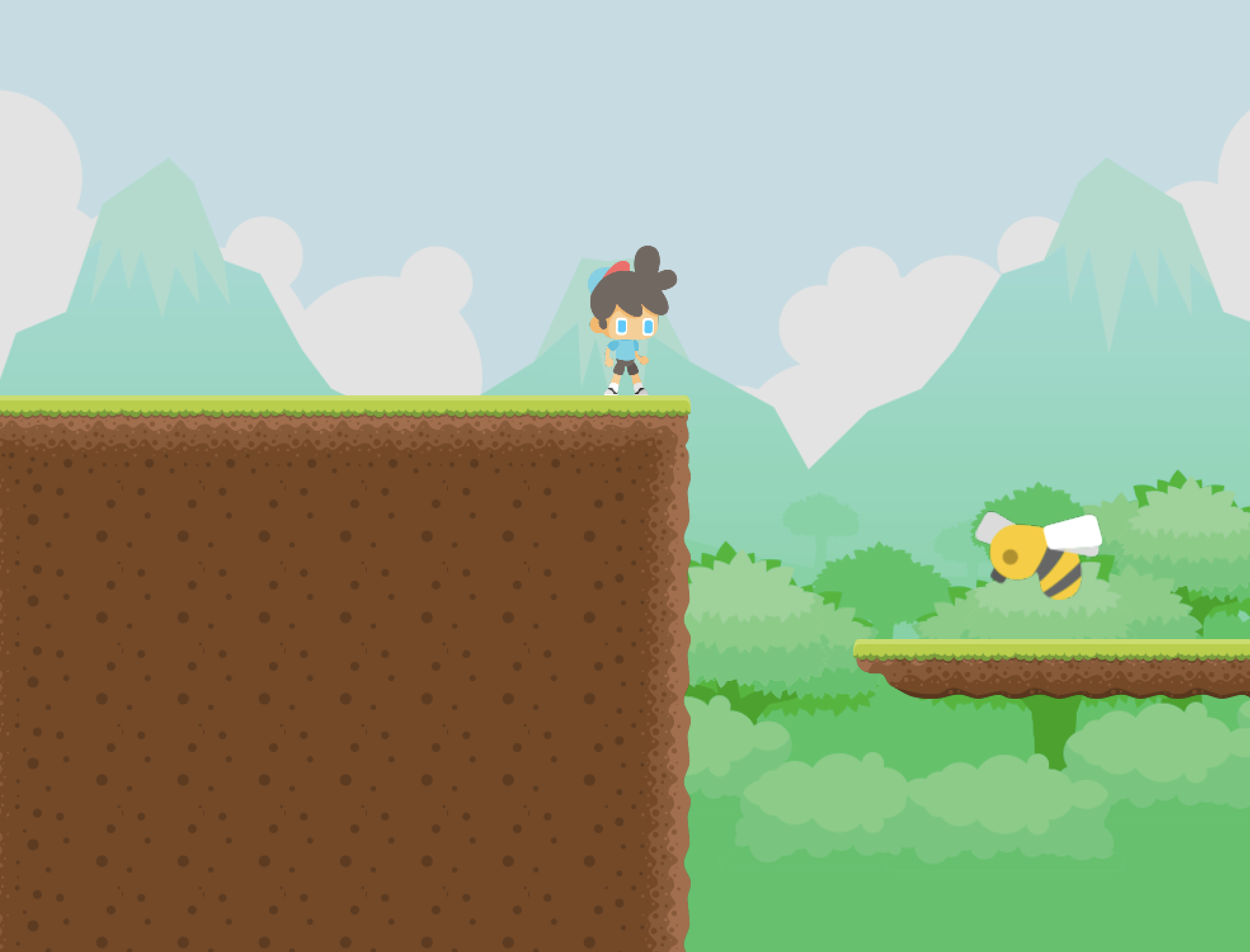 And finally the third and last of my Löve2D games/demos. With a very simple main menu and end screen, your goal is to reach the flags at the end of two short levels while jumping to avoid some killing, nasty bees.